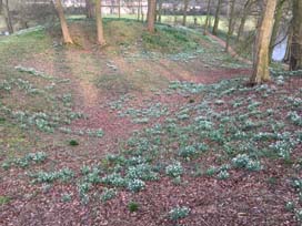 Ik vind sneeuwklokjes indrukwekkend als ze over wat grotere oppervlakken massaal voorkomen. Als sneeuwklokjes zich op een plek thuis voelen, kan na enkele jaren een mooi wit tapijt ontstaan. Op het ‘Bergje’ ontstaat al een mooi tafereeltje met sneeuwklokjes op een lichte helling tussen de bomen en het bruine gevallen blad. Het blad zorgt na verloop van tijd voor een mooie humuslaag waar de sneeuwklokjespollen zich in rap tempo vermenigvuldigen waardoor ze soms zelfs bovenop de losse grond komen te liggen. Ze rollen dan naar beneden en worden zo verspreid zonder tussenkomst van mij.